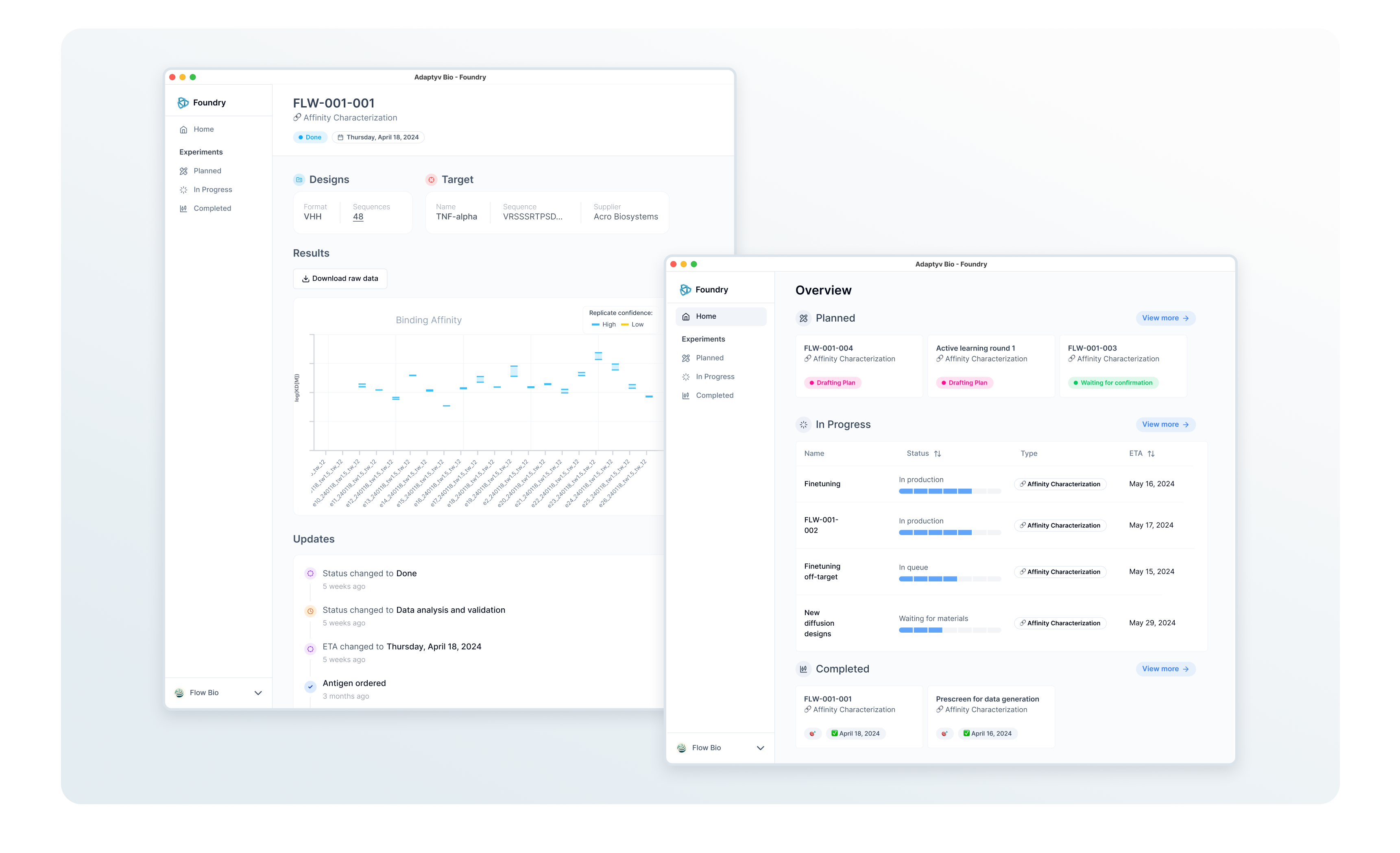 Adaptyv's primary site uses a light color scheme, with a background of #FFFFFF.
