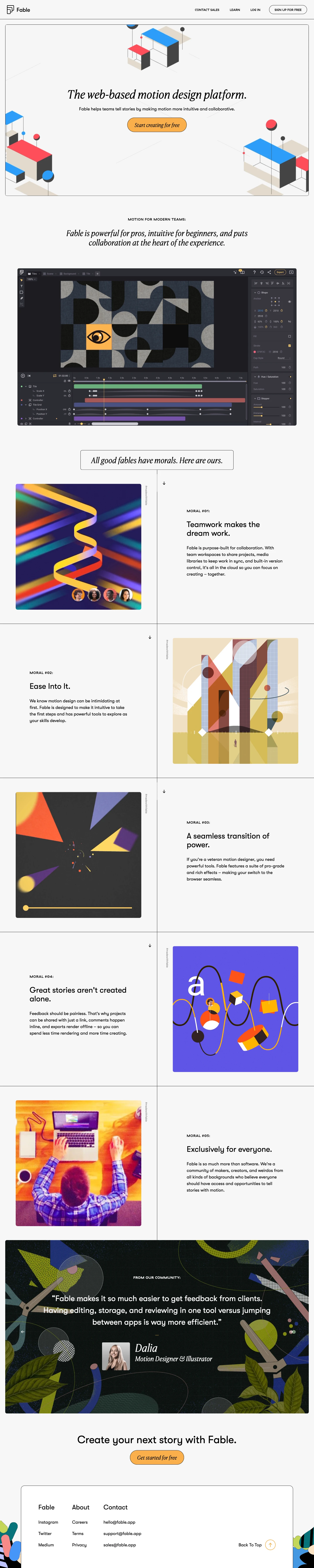 Fable uses Helvetica as the primary typeface across body and headings.