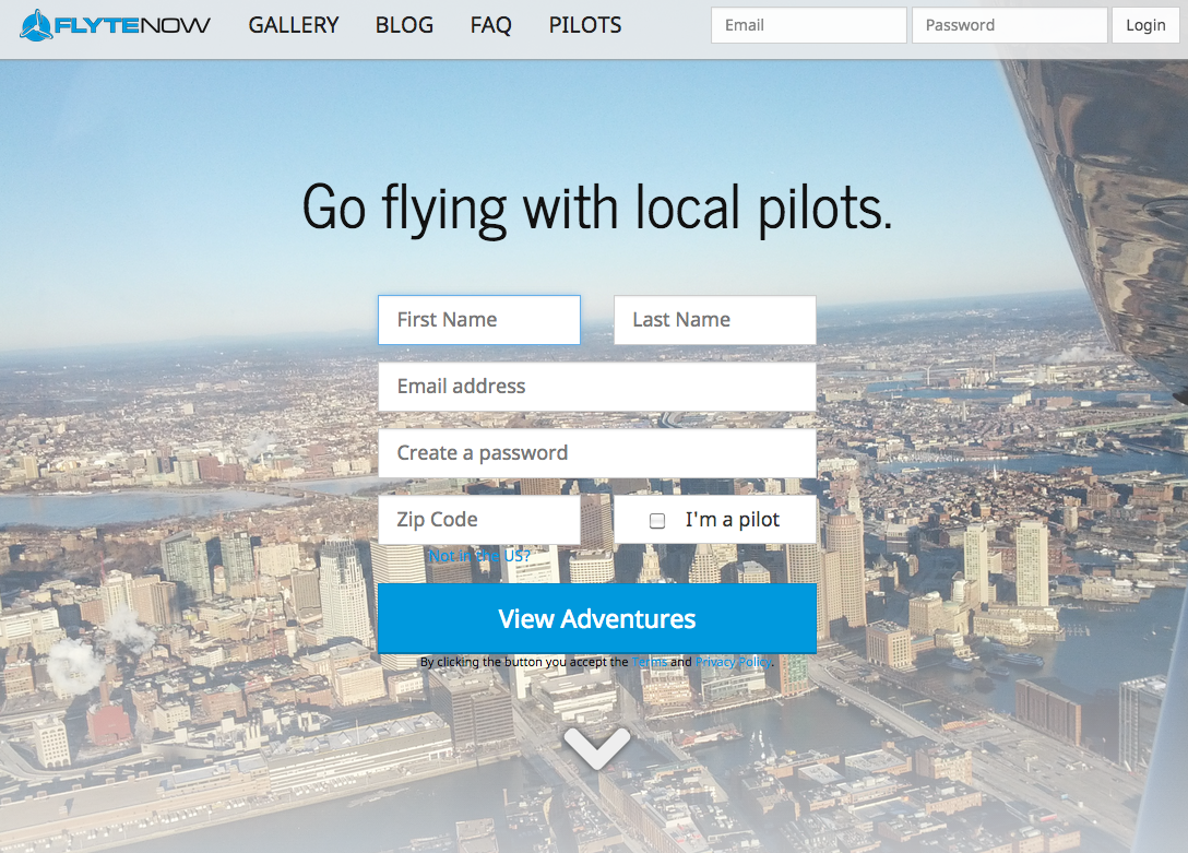 Flytenow's primary site uses a light color scheme, with a background of #FFFFFF.