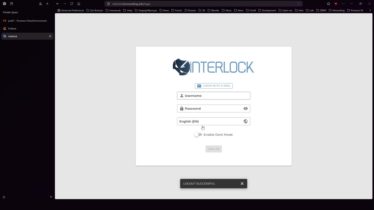 Interlock's primary site uses a dark color scheme, with a background of #646464.