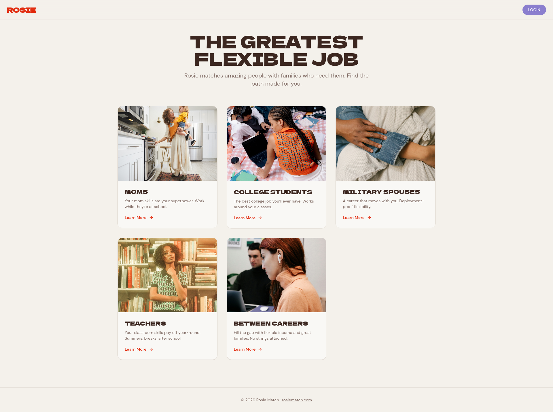 This profile was extracted from https://www.rosiematch.com/ using the Firecrawl branding extraction API, which inspects the live page's CSS, fonts, color tokens, and component styles. It is not affiliated with or endorsed by Rosie.