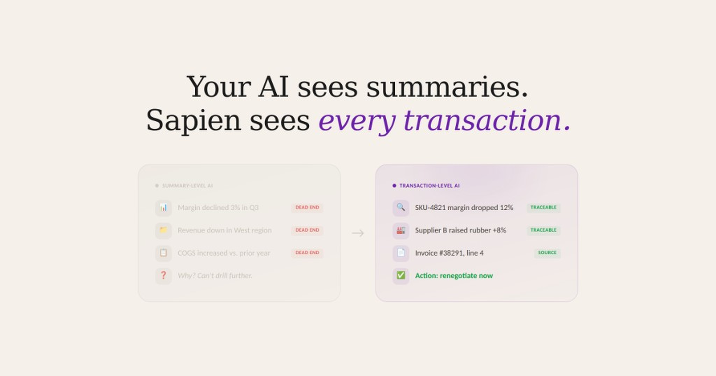Sapien's primary site uses a light color scheme, with a background of #FAF9F7.