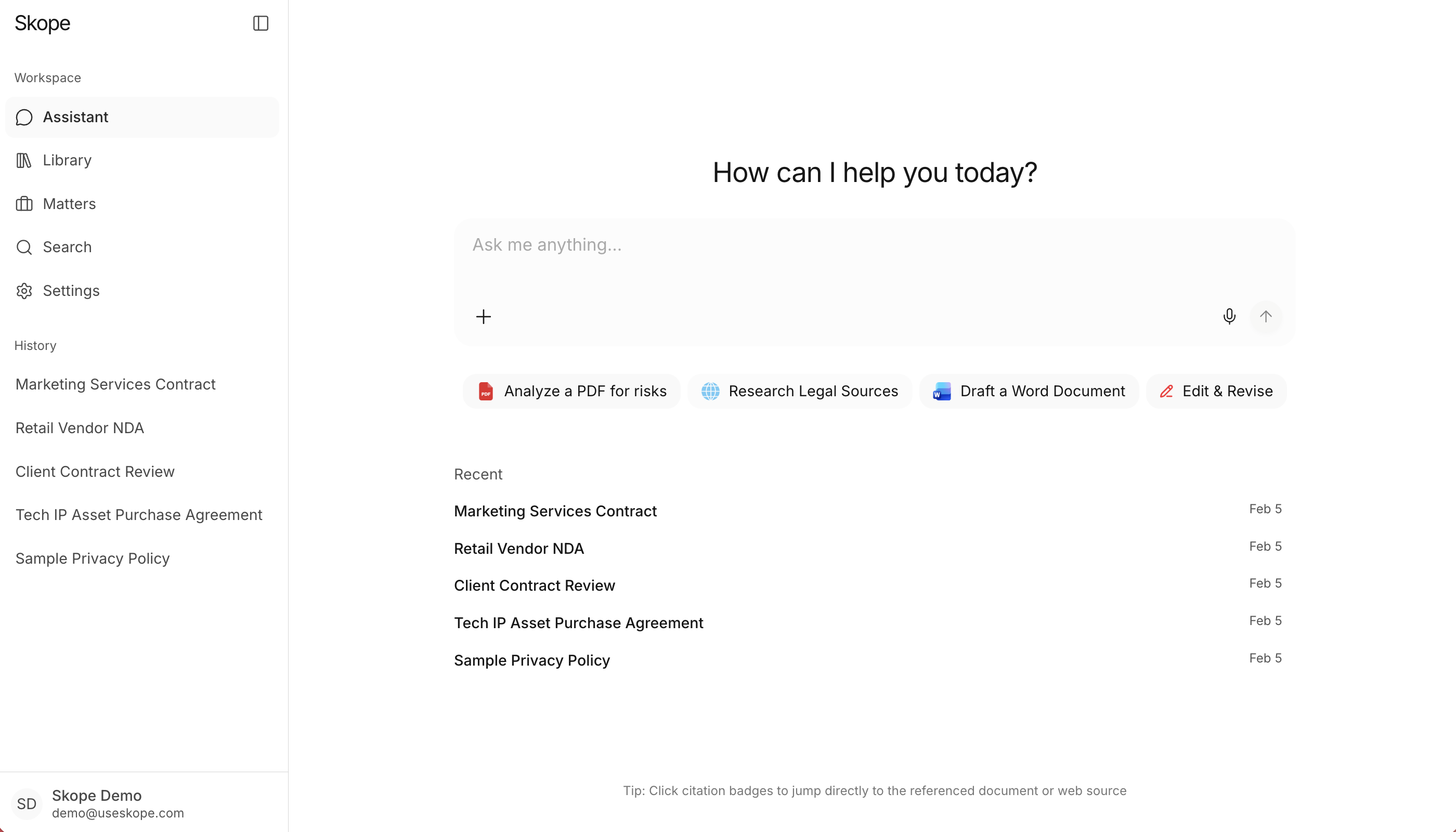 This profile was extracted from https://useskope.com using the Firecrawl branding extraction API, which inspects the live page's CSS, fonts, color tokens, and component styles. It is not affiliated with or endorsed by Skope.