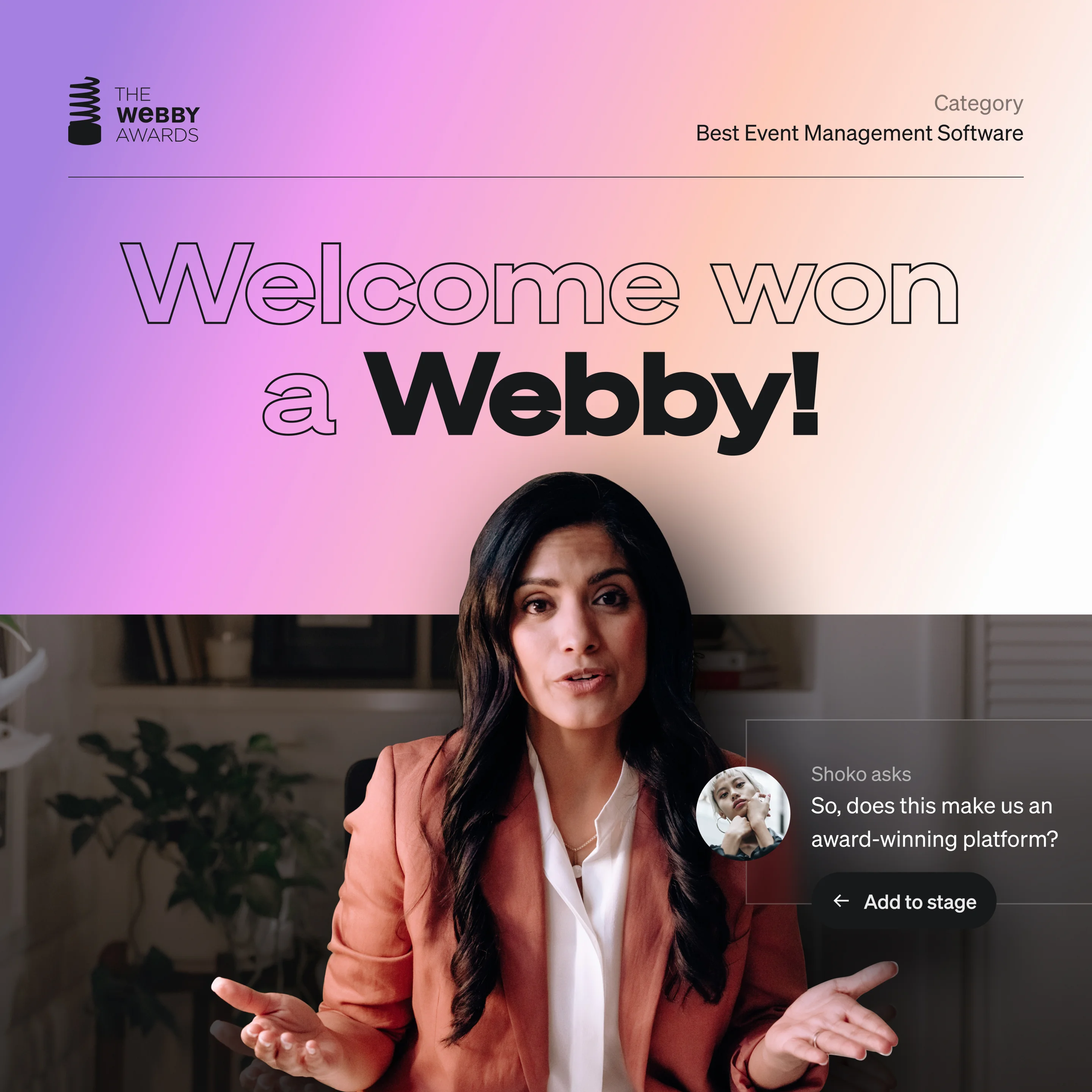 Welcome's primary site uses a light color scheme, with a background of #FFFBF5.